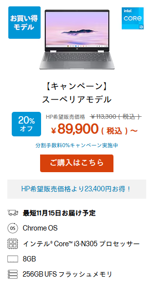 この記事ではHPで販売中、オススメのChromebookを紹介します。