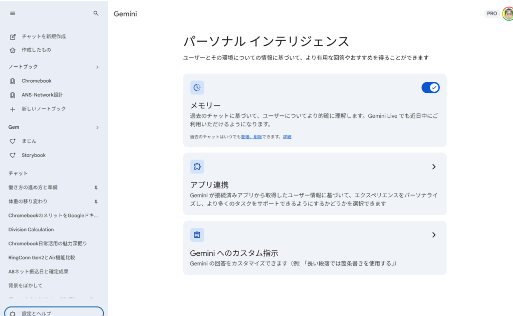 Geminiのパーソナルインテリジェンスも個人版で利用可能に!出力が個人仕様になっている