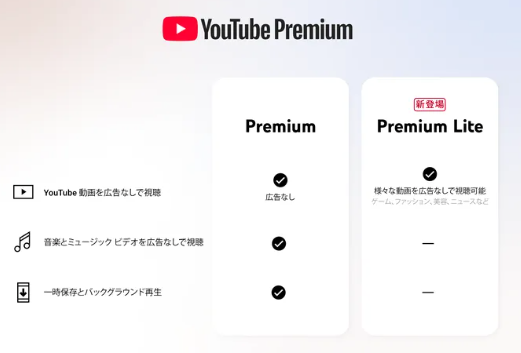 YouTube Premium Liteは、通常のYouTube Premiumより価格を抑えた廉価プランです。