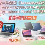 【新生活セール先行】Chromebookが29,800円から!Duet 11は28%OFFの49,800円、Chromebook Plusも7万円切り