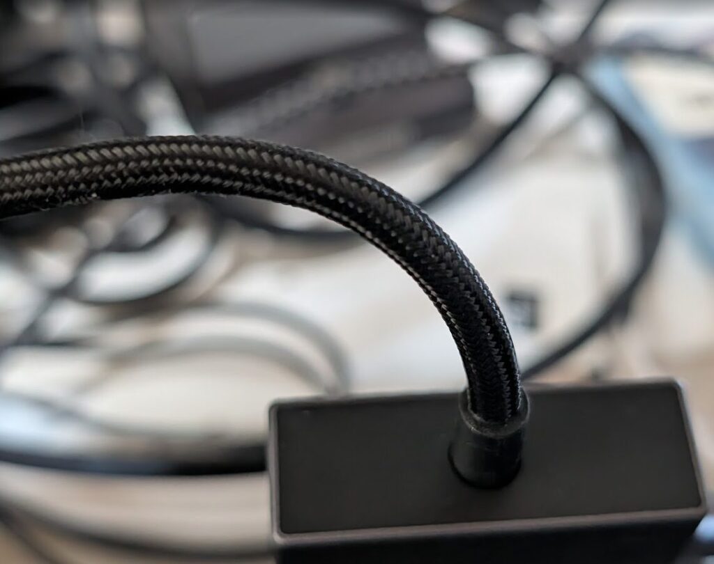 2つ目はケーブルの耐久性。エナメルのような網目状の加工が施されていて、折り曲げや繰り返しの使用に強そうな作りです。安いハブだとケーブルから断線することもあるので、ここに気を配っているのはさすがだなあと思いました。