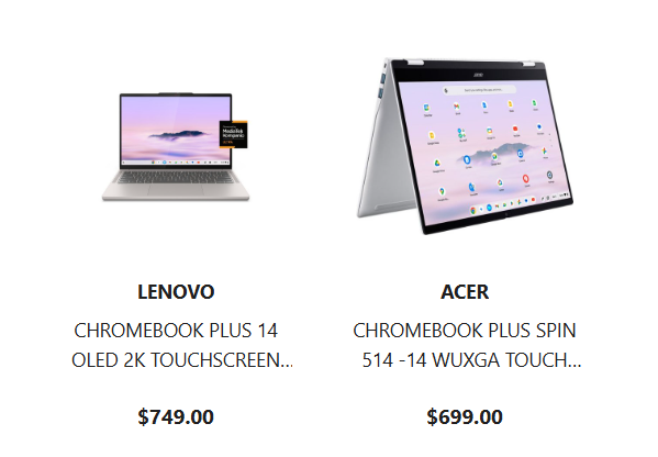 | 製品名 | Chromebook Plus Spin 514 - 14インチ WUXGA タッチ対応ノートPC (Google AI搭載) - MediaTek Kompanio Ultra - 12GB RAM - UFS 256GB - Wi-Fi 7 |